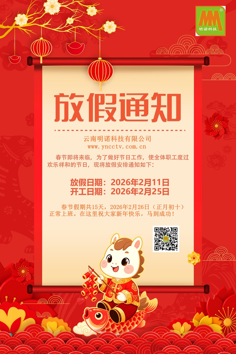 云南明諾提前預(yù)祝大家春節(jié)快樂、身體健康、馬到成功!